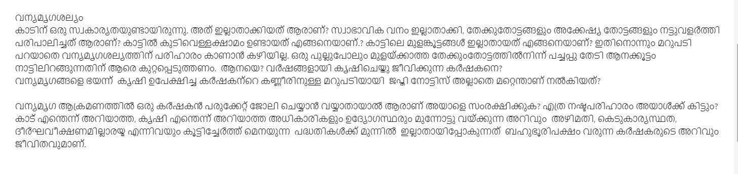 The compensation fixed by the government for crop loss due to wild animal attacks is meager and is a contempt. Contempt for the farmer. Contempt for the act of farming. Contempt for what he nurtures. The compensation does not meet even a fraction of the actual cost of even the production. For example (as per the calculations done in the year 2019)