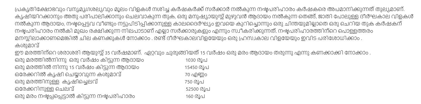 So it is with all crops, seasonal or perennial. They say that the compensation for crop loss should be decided and finalized in consultation with farmers. That has not happened to date.