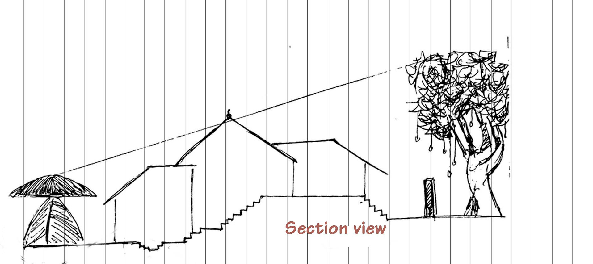 A friend of mine, listening to our desire for such a space, offered to support it financially. Since then I have spent nearly two years for this space to unfold. There are already established architectural languages among all religious communities for places of prayers and reflections,. But I did not want to rely on such principles. So waited for something to evolve, trusting the paths I have walked with tribals, the energy visthar's own places like well and jackfruit tree etc have gifted. I wanted this space, as we enter, help enter into a realm of ourselves, which otherwise is not known to us.