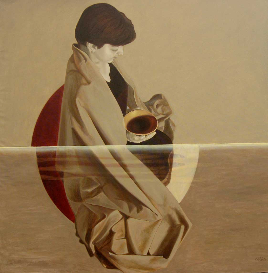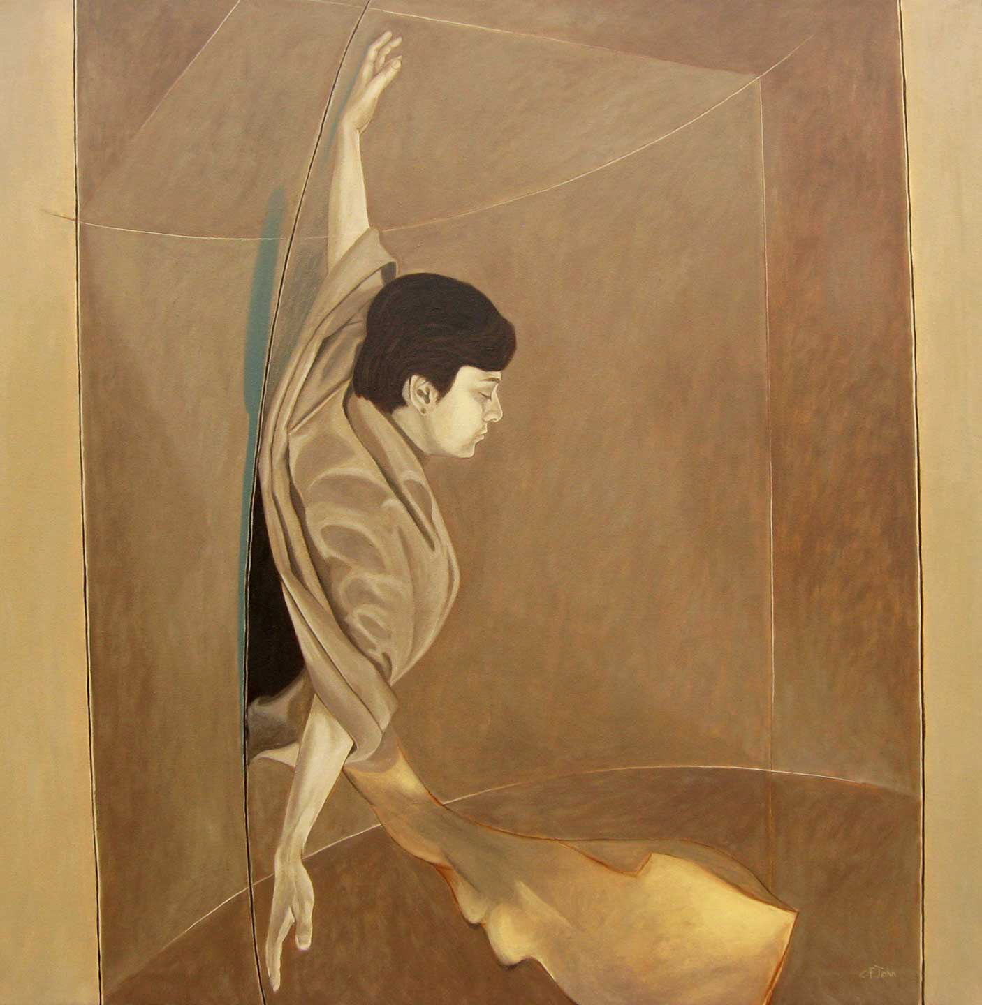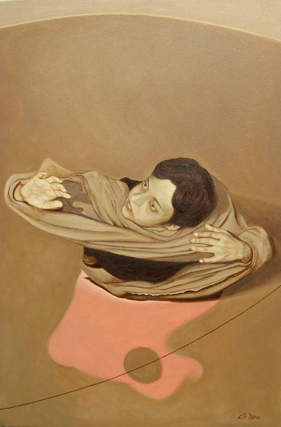 Each artiste had his distinct approach to depict their tryst with Bacon. Firstly, CF John greets us with amazing works that suffocates and liberates us alternatively. His works seem to have essentially spiritual undertones, with the principal figure reaching out to the unknown. An amazing feeling, the same plane where you are transported while immersed in a Bergman drama. Especially one work stretched itself beyond the canvas, to eternity and Bacon via intersecting arcs, the same way a girl awaited God to reach from beyond the silver screen through a broken wooden plank.