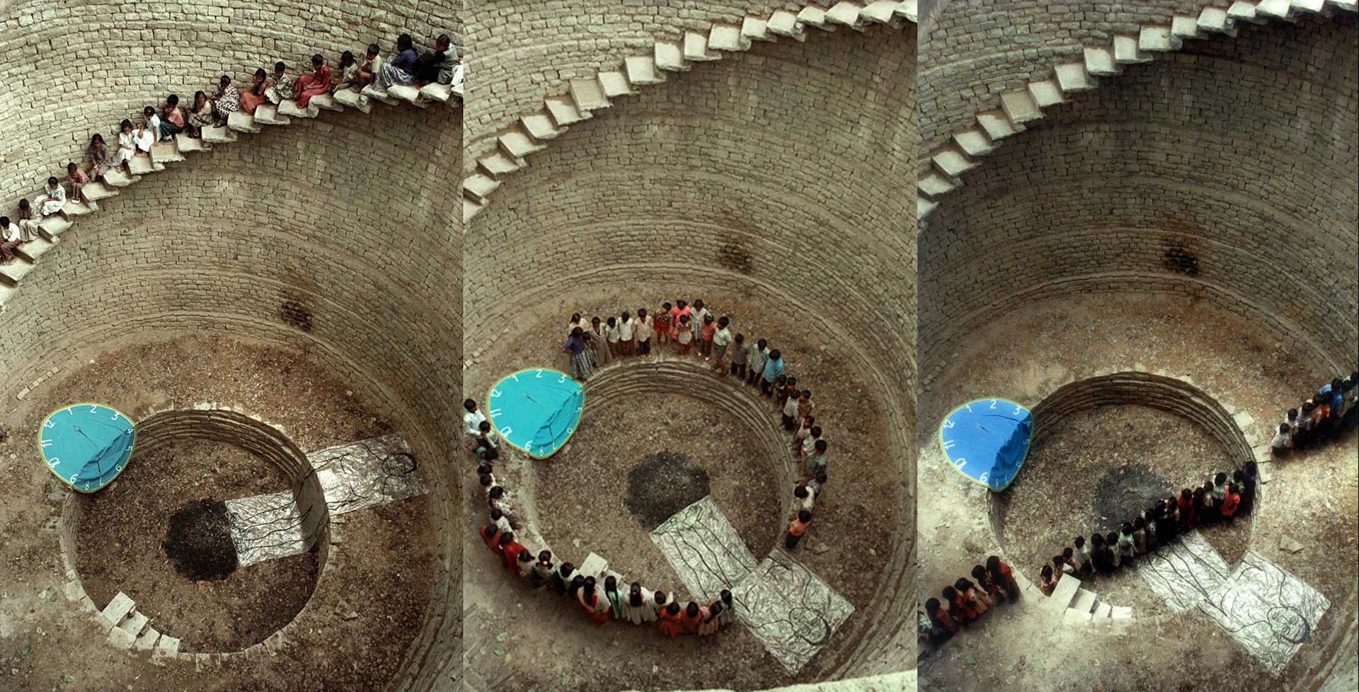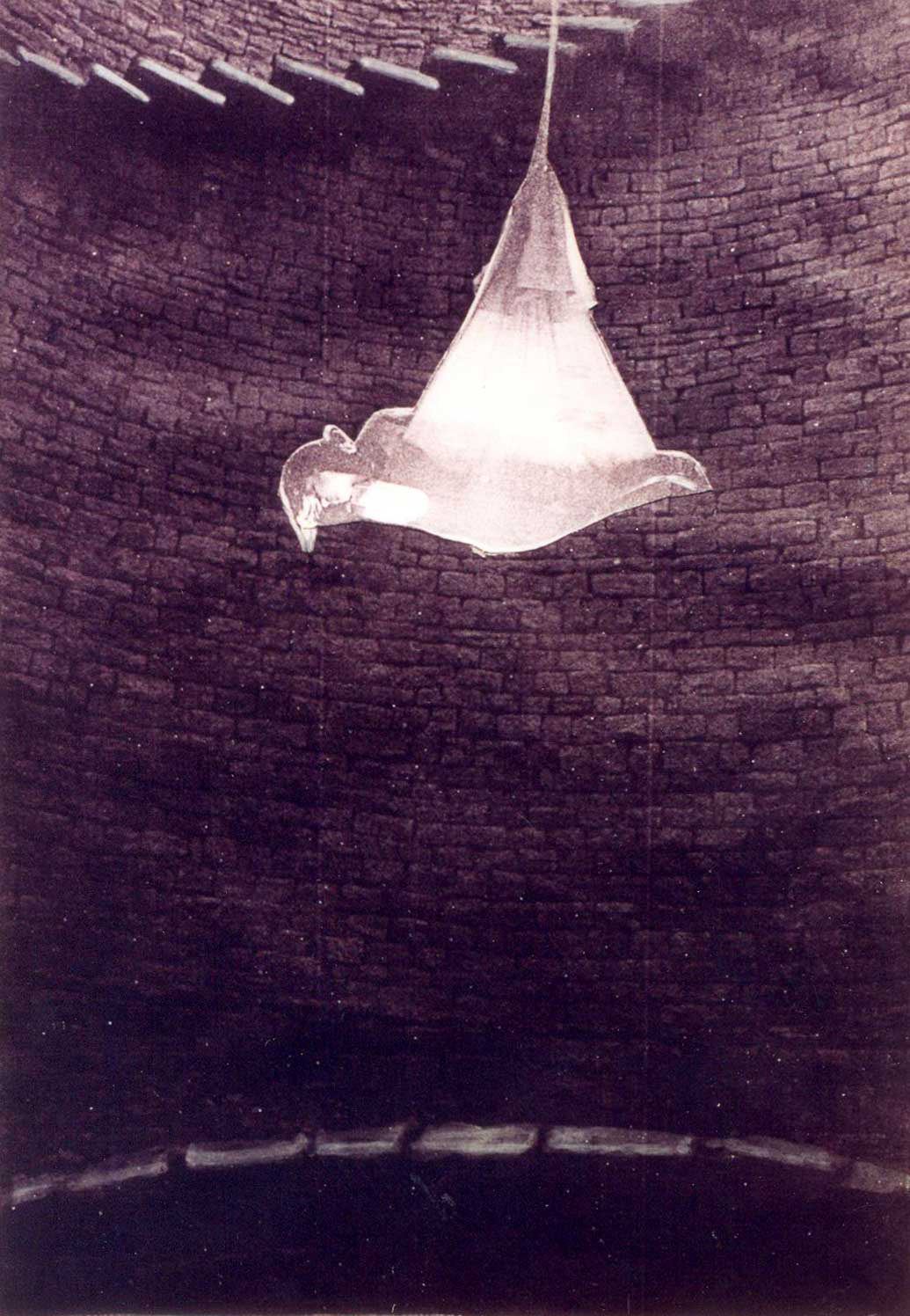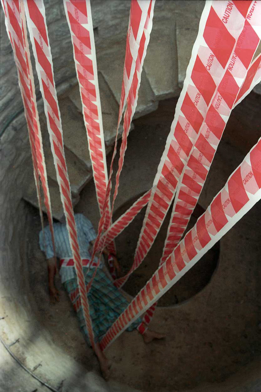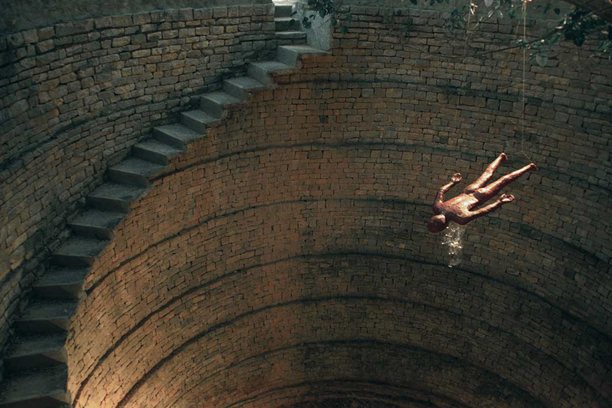 In the 30ft space from the ground to the floor of the well, every moment of our work oscillated between the gravity of the body and the realization of everything that is vanishing -- the end of matters that mattered. Hence working on every form was an attempt to explore the enigma of our relationship between what we are and that which is disappearing, between what is present and what is absent.