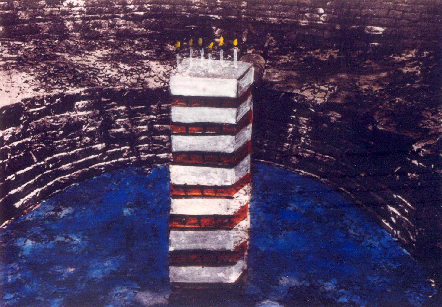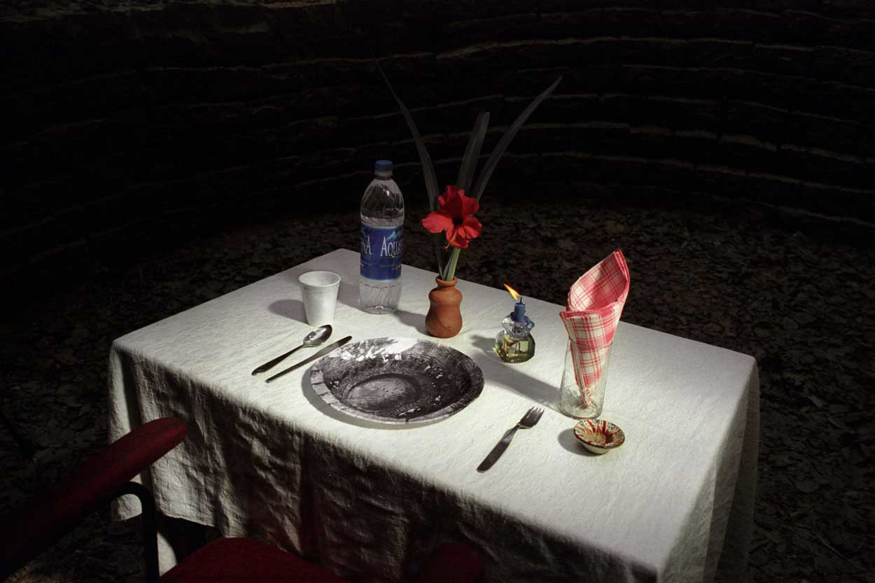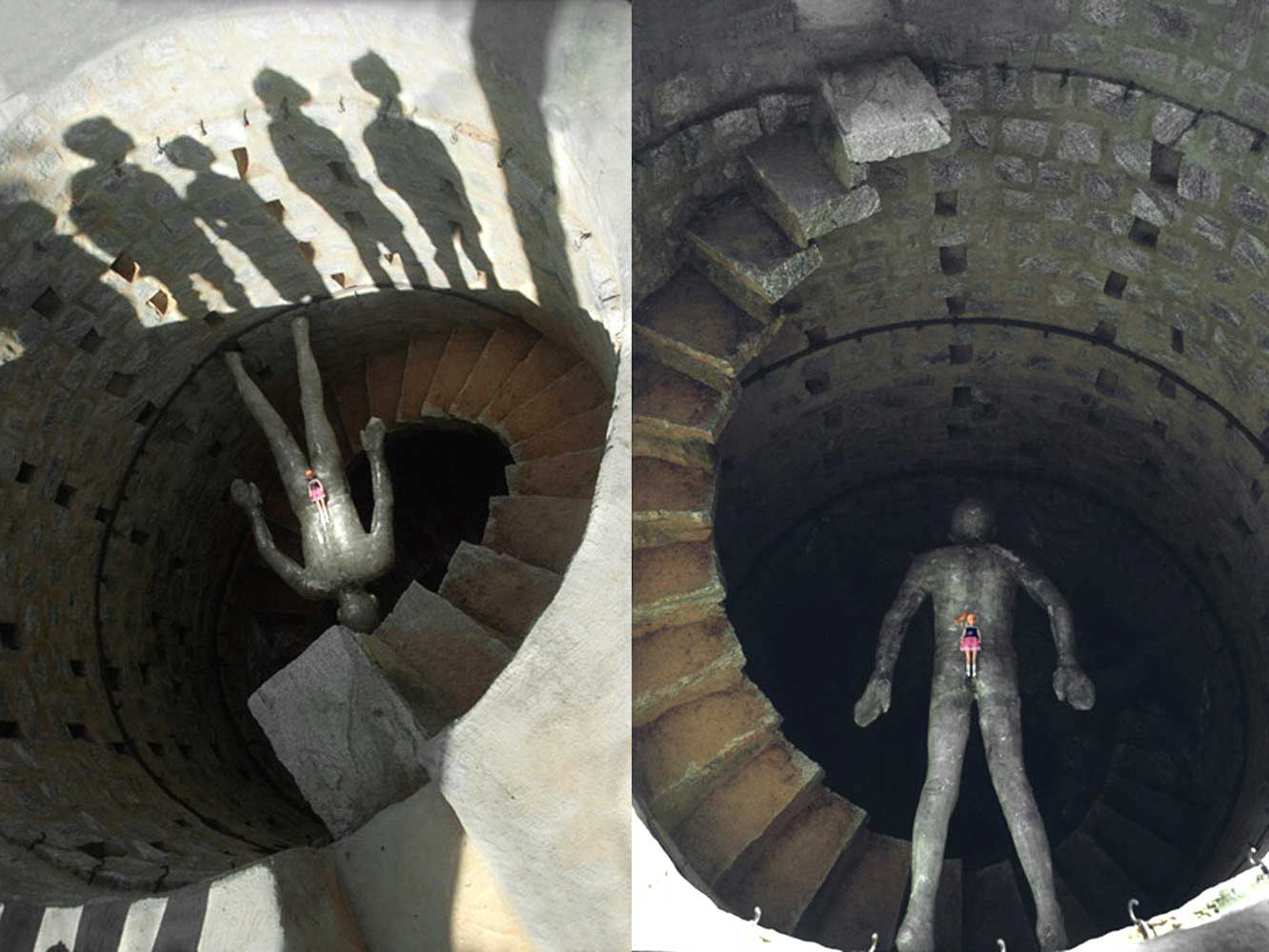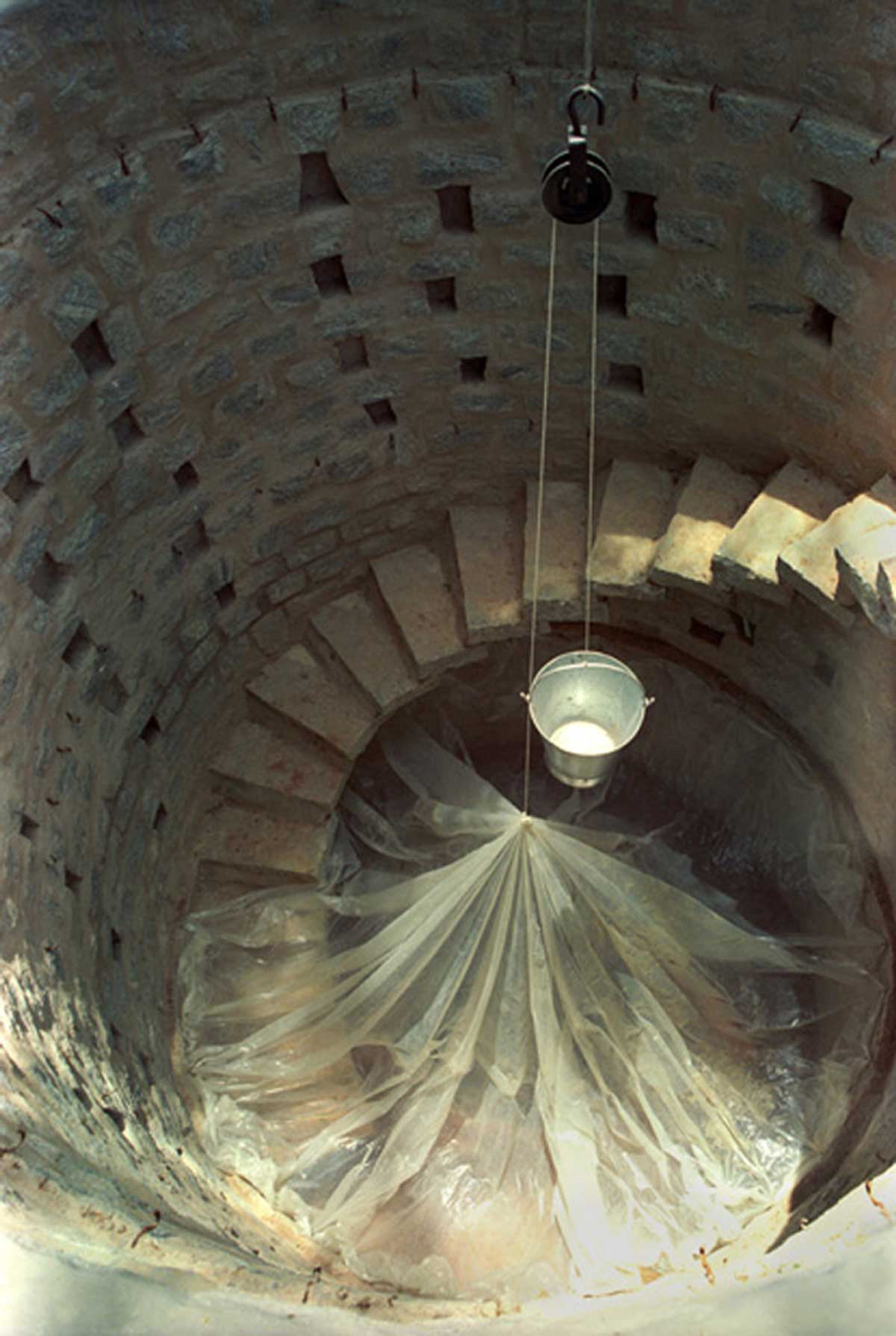 In the 30ft space from the ground to the floor of the well, every moment of our work oscillated between the gravity of the body and the realization of everything that is vanishing -- the end of matters that mattered. Hence working on every form was an attempt to explore the enigma of our relationship between what we are and that which is disappearing, between what is present and what is absent.