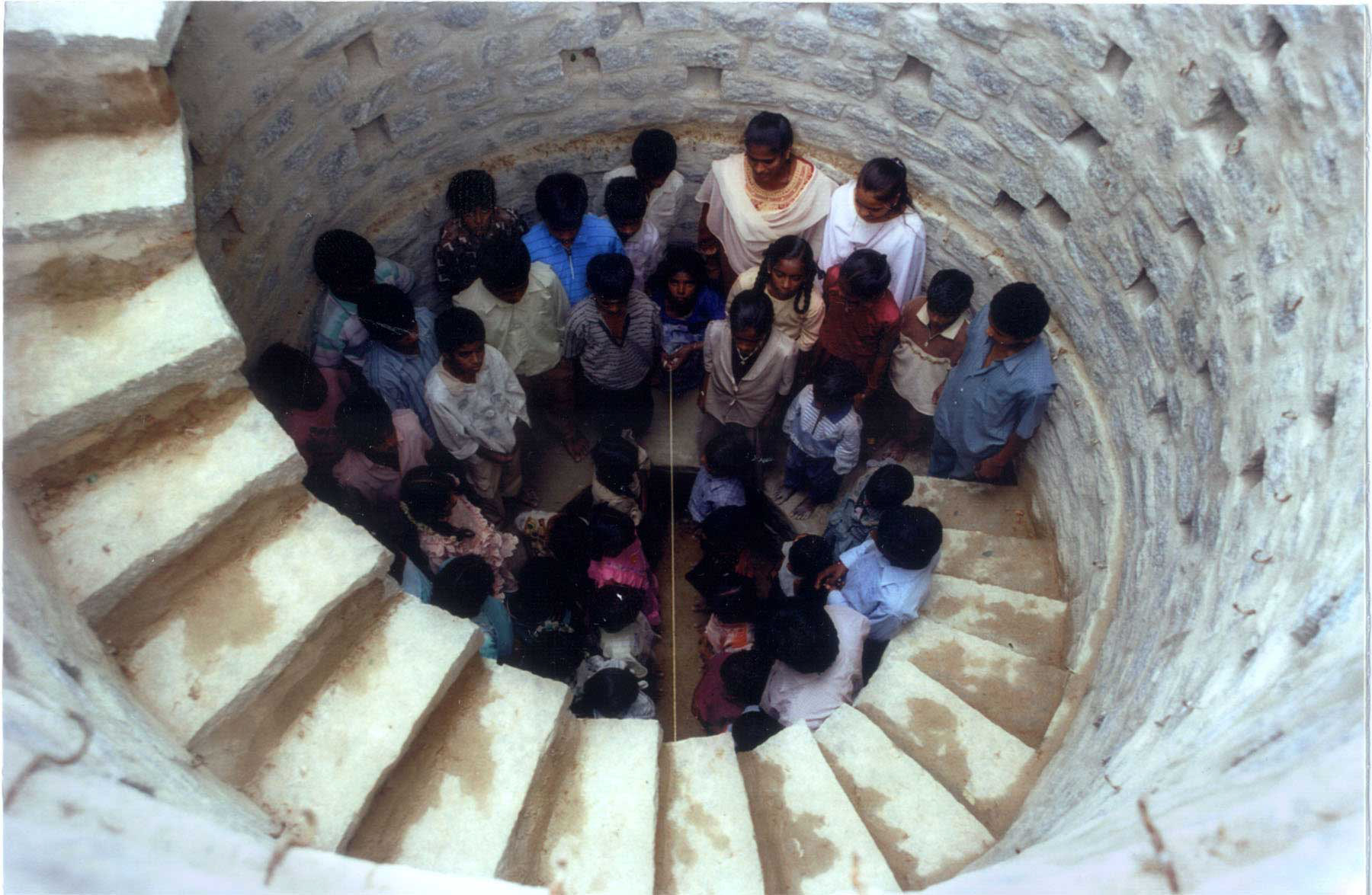 I saw this well for the first time in 1994. An abandoned self. People had dumped into it all what they did not want or did not want to see. About 10 feet of the side wall had collapsed from the top. The parapet wall too had gone. A number of steps leading to the bottom lay broken. But a pipal tree growing of from the wall from its depth had an enigmatic presence.